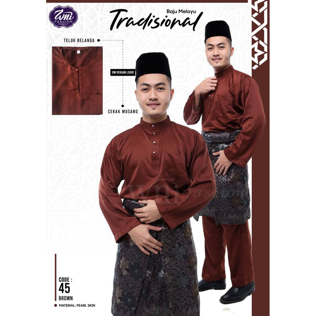 Pakaian Tradisional Melayu Lelaki Baju Melayu Teluk Belanga : Baju Melayu Tradisional Brown Wni Fashion Dewasa Dan Kanak2 Sedondon Raya Cekak Musang Teluk Belanga Shopee Malaysia